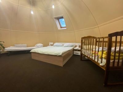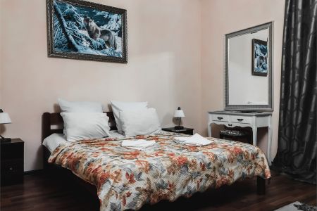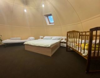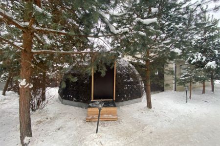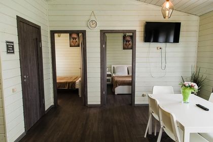 Загородный отель раскинулся на просторной зеленой территории и включает несколько типов размещения: 5 категорий номеров, дуплексы, купольный домик-сферу, коттедж с индивидуальной сауной. Все варианты проживания оснащены удобными спальными местами, мебелью для хранения одежды и обуви, телевизором, отдельной ванной комнатой. Некоторые дополнены собственной кухней со всем, что может пригодиться при приготовлении блюд. Разрешено заселение с питомцем небольшой породы.